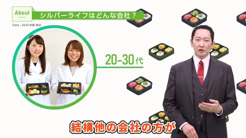 「食の観点から誰もが安心して歳を重ねていくことができる社会」を目指し、高齢者向けの配食サービス事業を行う企業。食事制限のある方や、食べやすさ・健康に配慮したお弁当、オフィス、お子様用など多種多様なお弁当を、徹底した安全管理を行う国内自社工場にて製造。